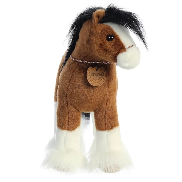 Did you know that Breyer and Aurora have worked together to make a line of plush horses that are out of this world? You really need to check out the Breyer Showstoppers Clydesdale Stuffed Animal by Aurora. Measuring thirteen inches, this realistic stuffed Clydesdale has all the aesthetic of a Breyer horse paired with the soft, durable plush only Aurora can offer. The details are right there in the name: showstopper. From the smooth plush coat to the long, feathery mane, you can be sure this realistic Clydesdale stuffed animal is going to turn heads. Where can you get your hands on this magnificent stuffed Clydesdale? I’m so glad you asked because the answer is right here at Stuffed Safari! We probably all remember collectible plastic Breyer horses growing up, and many of us are familiar with the quality plush toys created by Aurora World Inc. These two amazing companies have teamed up to bring us a Clydesdale plush animal that is out of this world. All of the realism and attention to detail comes to life when you reach out to hold this Clydesdale plush animal in your hands. Do you have a horse fanatic in your life? Someone who loves stuffed animals. You can make a lasting impression by making the Breyer Showstoppers Clydesdale Stuffed Animal by Aurora a gift to last a lifetime. You’ll be hard-pressed to find someone who wouldn’t want this stuffed Clydesdale as a cuddly plush companion. Whether for Christmas, a birthday, or an anytime gift to say you care, you can’t go wrong with this timeless realistic Clydesdale stuffed animal. So, what are you waiting for? Order one today!