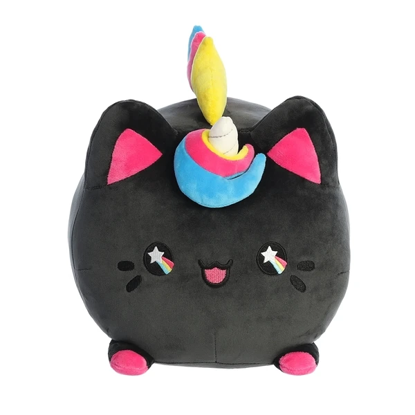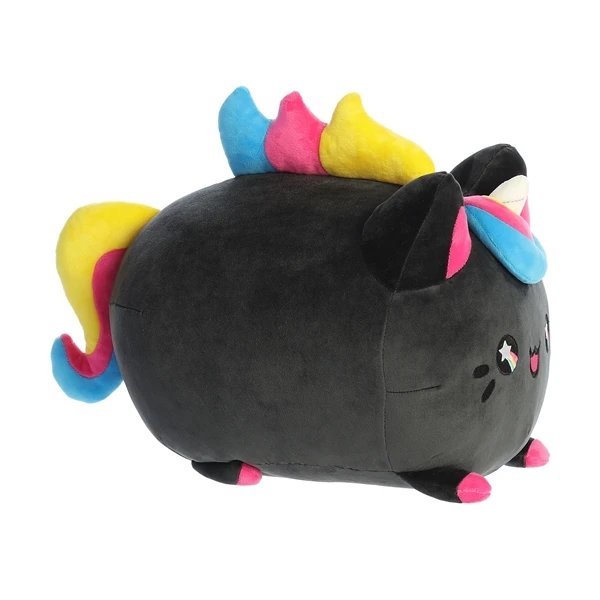 Ink Drop the 16 Inch Stuffed Unicorn Cat Meowchi Plush by Aurora dreams of being a movie star, and she quite literally has stars in her eyes. At around 16 inches, this fancy feline is rocking the unicorn look and showing you that black can be just as bright and beautiful as the more usual unicorn colors. Wonderfully chubby and cuddly, this plush unicorn cat has a mane, tail, and horn in vivid shades of pink, blue, and yellow, which are reflected in the celestial patterns in her stunning embroidered eyes. Made from a midnight black plush fabric, Ink Drop the 16 Inch Stuffed Unicorn Cat Meowchi Plush by Aurora also has cerise colored paws that really stand out, so she’ll never be able to hide behind the curtain without you seeing her twinkle toes. Filled with a soft eco-friendly fiber fill, this stuffed unicorn cat is just the right size for snuggling up to, and with her oh-so-soft fur to stroke, you will be asleep in minutes. A fitting gift for anyone who likes their pets to come with a side of magic, Ink Drop the 16 Inch Stuffed Unicorn Cat Meowchi Plush by Aurora will enchant and delight all who see her, and she’ll leave them – and you – feline really good about bringing her home.