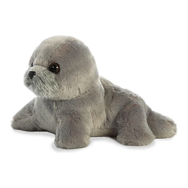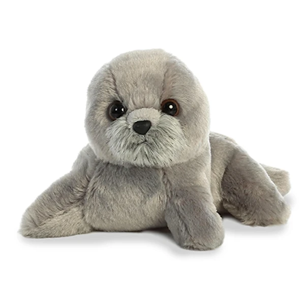 You’ll love Little Harpo the Stuffed Gray Seal Mini Flopsie by Aurora like a surfer loves to catch a big wave! Measuring about seven inches long, this small gray seal stuffed animal has a soft gray plush fur, brown eyes, and an adorable baby face. Our little plush gray seal sports the coloring of a real gray seal but fits much better in your pocket than the actual animal! Little Harpo’s body is bean weighted for excellent cuddling and posing opportunities. The manageable size (slightly longer than the average adult hand) and affordable price of this small stuffed gray seal make it perfect for party favors, gift bags, school events, and any other occasion that calls for an adorable little hand out! The old saying, ‘a stuffed gray seal in the hand is worth two on the shelf’ really is true. What? That’s not an old saying? Give it some time. It will be eventually. Like most Mini Flopsies, Little Harpo can be personalized at StuffedSafari.com. Birthday greetings, business logos, and all sorts of other messages never look better than when they are sent with a little personalized gray seal stuffed animal! Personalized or not, Little Harpo is sure to be a favorite stuffed friend for gray seal lovers everywhere!