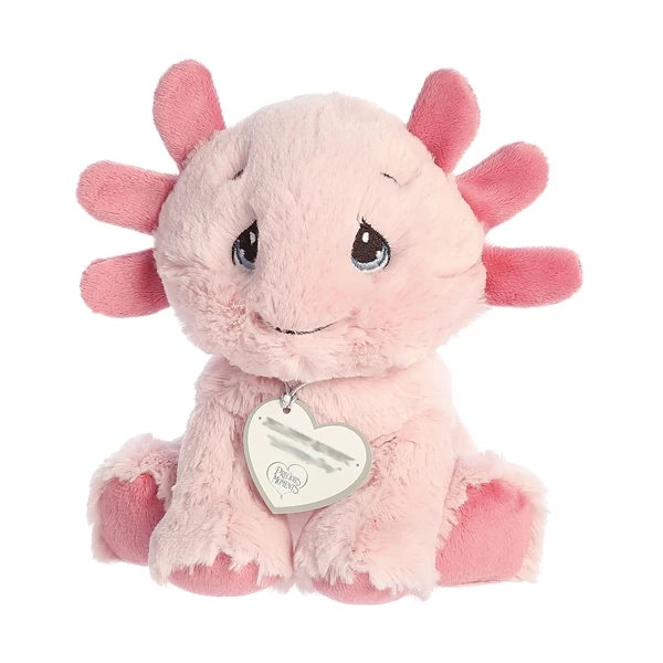Youll feel like youve won the axolottery when you have the Precious Moments Lottie Axolotl Stuffed Animal by Aurora in your arms, because this pretty plush axolotl is the best prize of all. At around 8.5 inches, the Precious Moments Lottie Axolotl Stuffed Animal by Aurora is a beautiful pink color, with darker pink gills around her head, and sweet little footpads to match. What sets this stuffed axolotl apart from other versions, though, are her gorgeous teardrop-shaped eyes, which have been embroidered to ensure that she is suitable for both young and old. Soft and cuddly, the Precious Moments Lottie Axolotl Stuffed Animal by Aurora is filled with an eco-friendly fiber fill so shes better for the environment, too. Wonderfully fluffy with the most delightful expression on her face, this axolotl stuffed animal is definitely gill-ty of being one of the sweetest soft toys around, especially when you see the touching message thats printed on her heart-shaped hangtag. Whether you give this cuddly salamander away to someone special or keep her for yourself, she will provide a daily reminder that you, or your special someone, are very much loved.