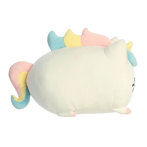 Kawaii anyone wouldnt fall in love with the White 15 Inch Stuffed Unicorn Cat Meowchi Plush by Aurora is beyond us, because he is absolutely gorgeous. Totally magical with an enchantment all of his own, this plush unicorn cat measures a whopping 15 inches, which is more than enough to fill your arms and your heart. With a stunning white coat as all the fairytale unicorns do the White 15 Inch Stuffed Unicorn Cat Meowchi Plush by Aurora also has a mane, tail, and horn made up of pretty pastel shades of pink, blue, and yellow for a beautiful springtime vibe. Endearingly happy with a lovingly embroidered smile, this stuffed unicorn cat is filled with eco-friendly fiber fill to ensure he is kinder to the planet. With pink paws to match the blush in his coloring, the White 15 Inch Stuffed Unicorn Cat Meowchi Plush by Auroras eyes display a beautiful shooting star in each one, with complementing colors on the stars tails. The perfect companion for story time, this unicorn cat stuffed animal will happily lie in your arms as you read, or allow you to rest your head on his body for a truly magical sort of pillow.